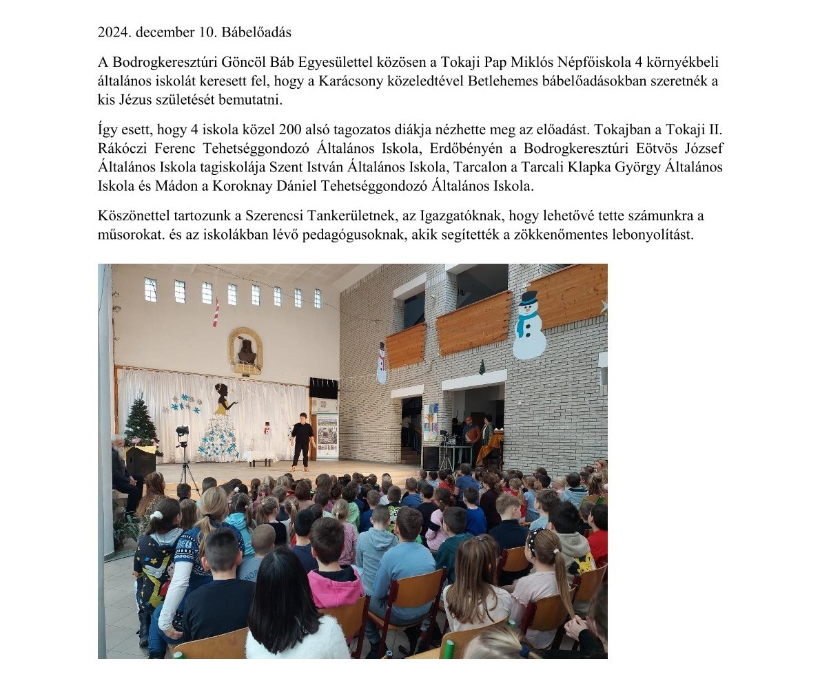 Bábelőadás Tokajban, Tarcalon, Mádon és Erdőbényén
