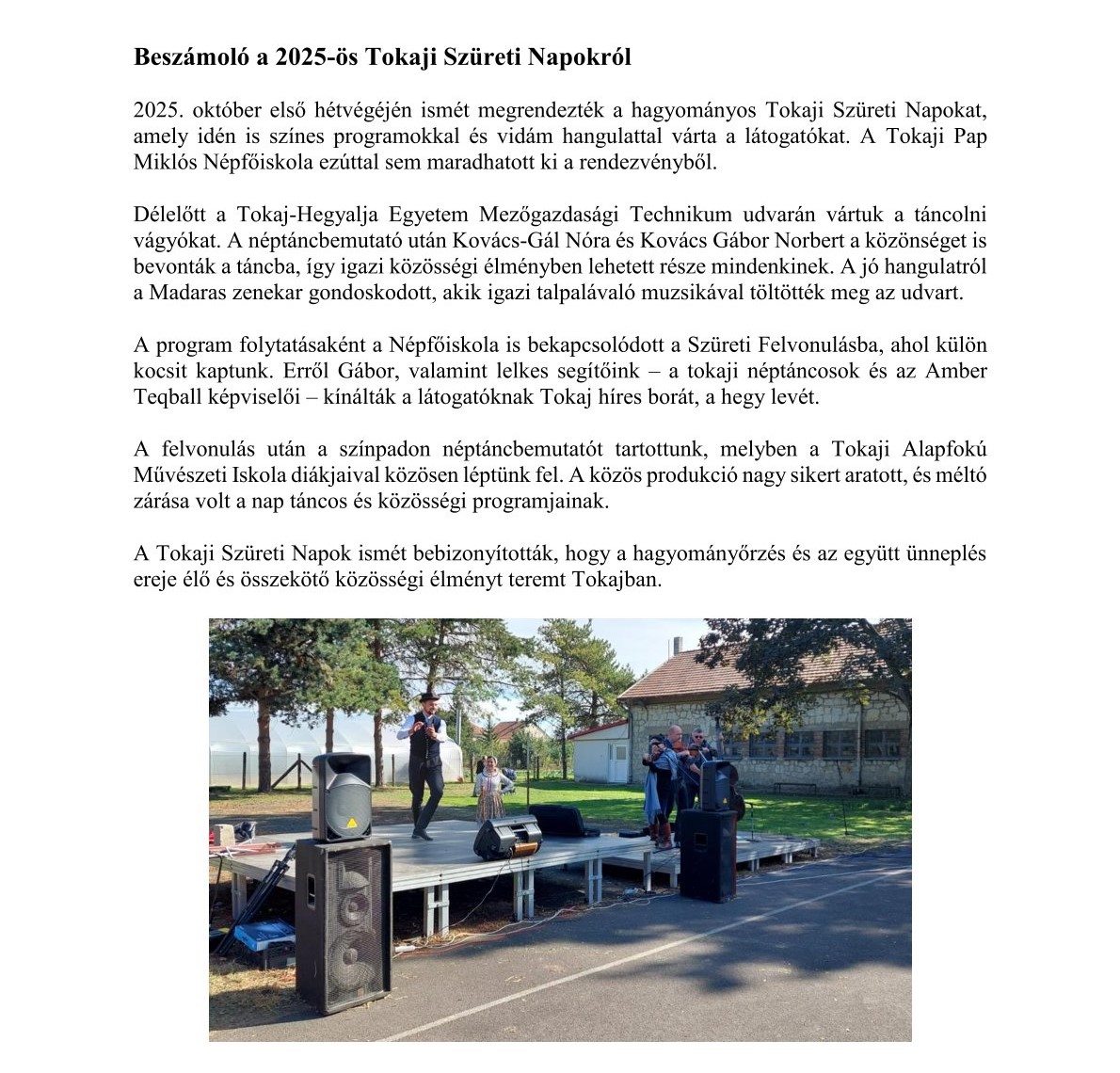 Beszámoló a 2025-ös Tokaji Szüreti Napokról