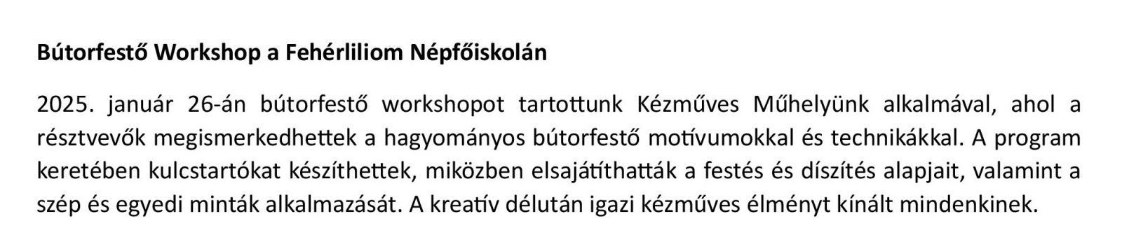 Bútorfestő Workshop a Fehérliliom Népfőiskolán
