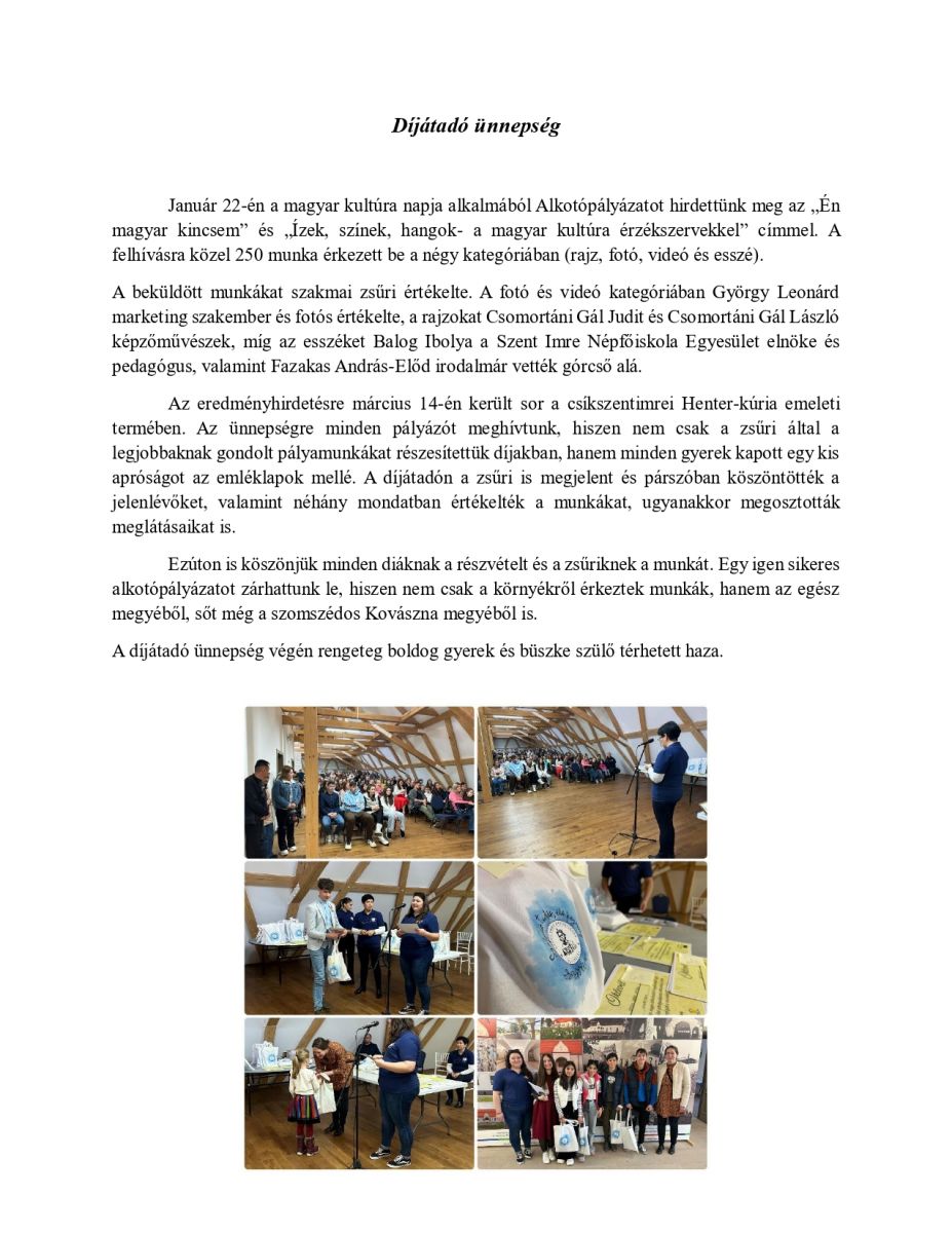 További információért látogassanak el az csíkszentimrei Szent Imre Népfőiskola Egyesület honlapjára.
