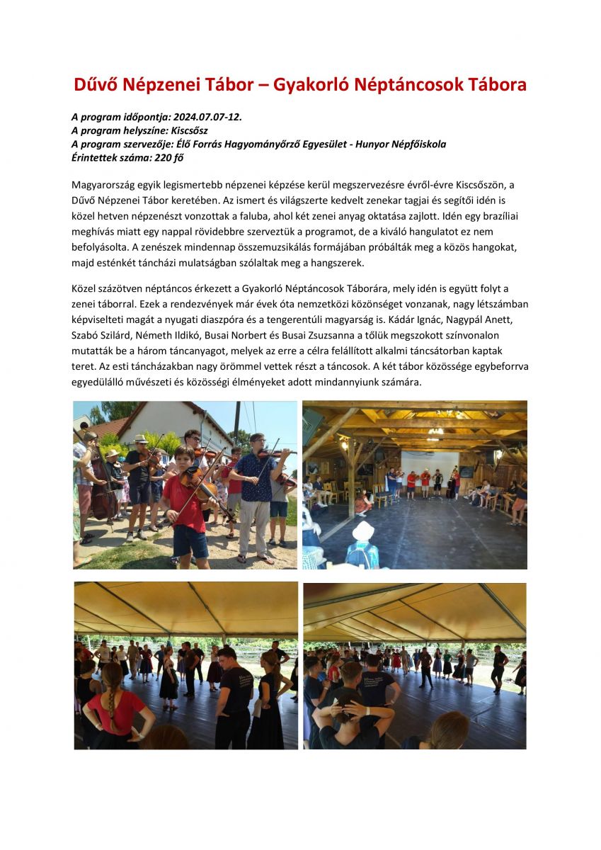 Dűvő Népzenei Tábor – Gyakorló Néptáncosok Tábora
