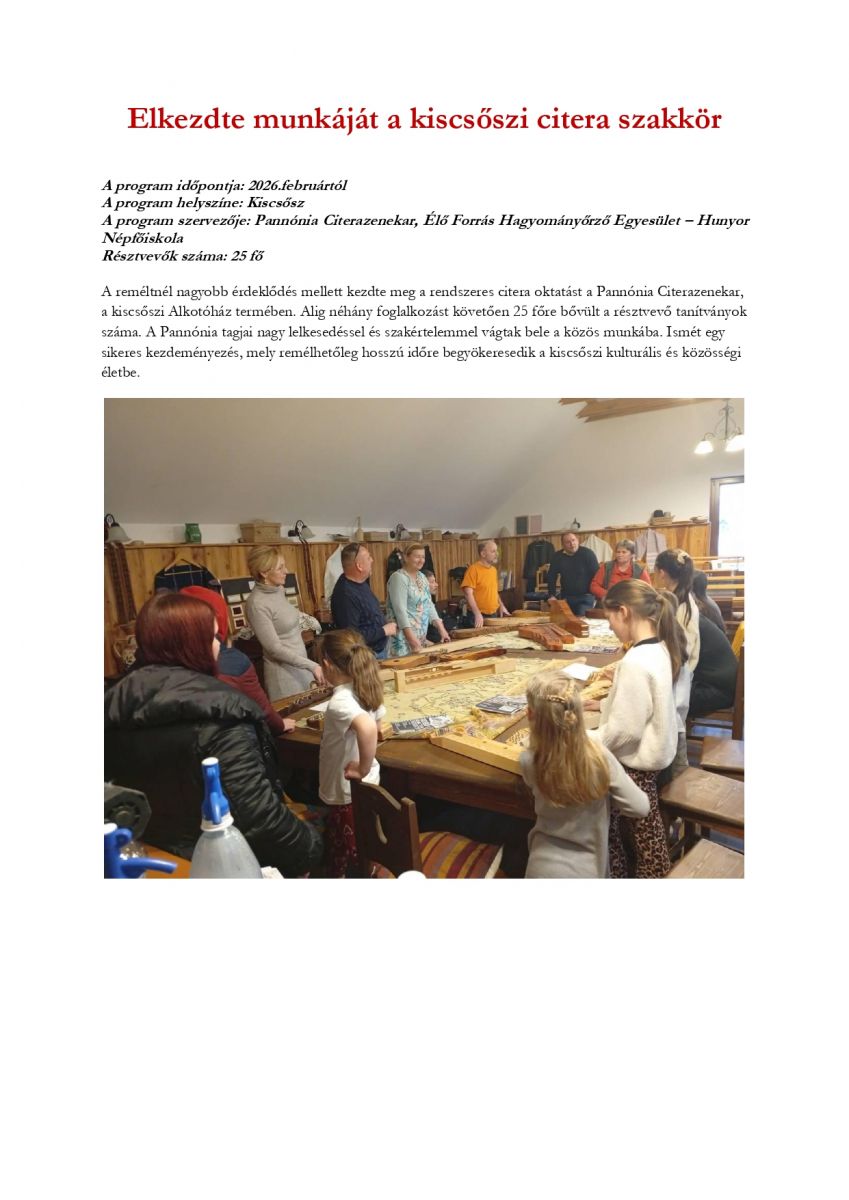 Elkezdte munkáját a kiscsőszi citera szakkör
