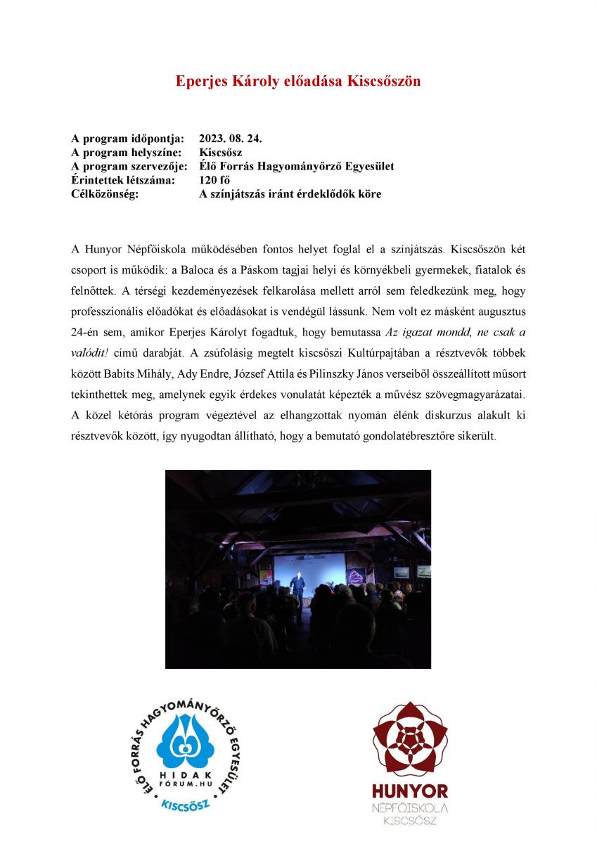 Eperjes Károly előadása Kiscsőszön