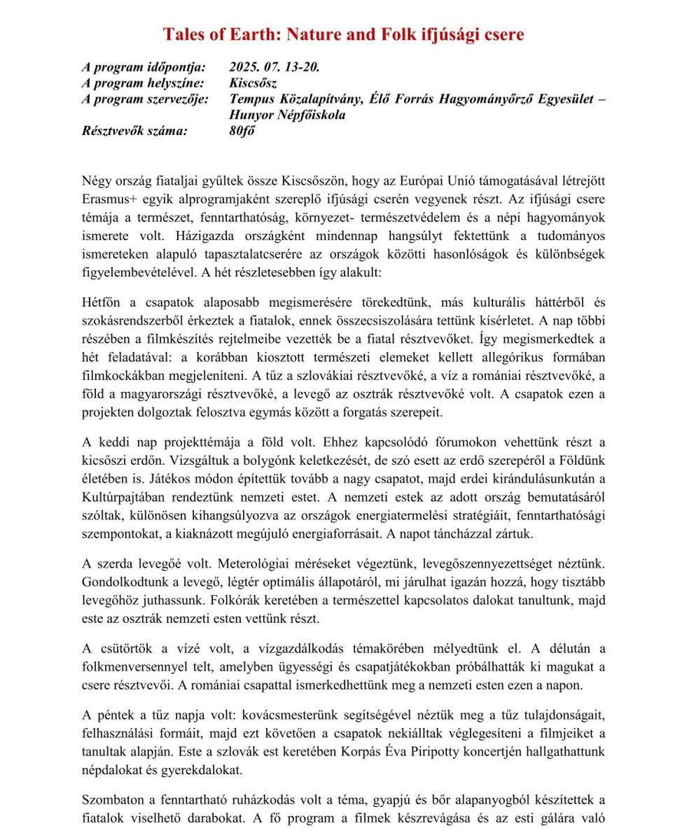 ERASMUS témahét Kiscsőszön, négy országgal