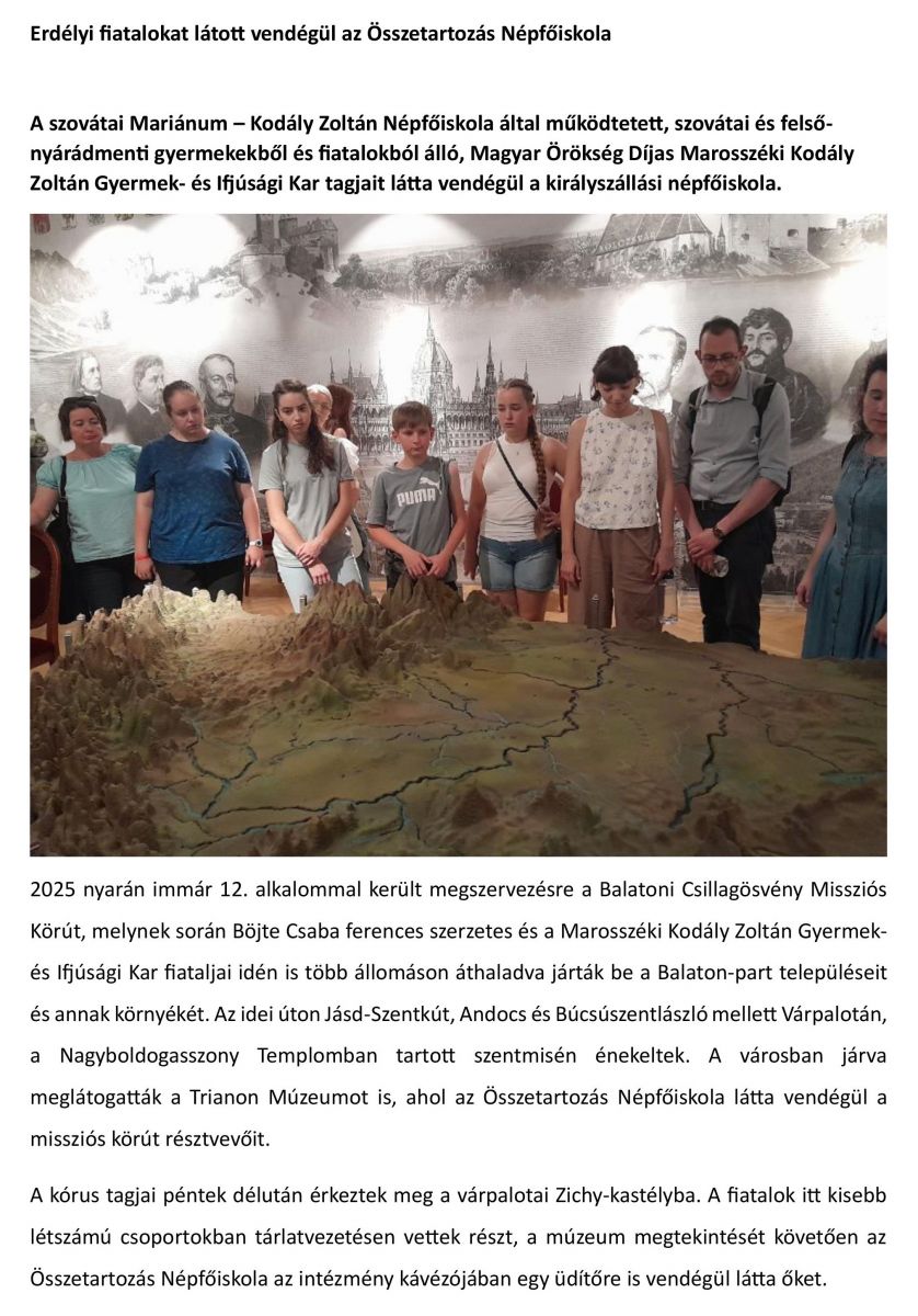 Erdélyi fiatalokat látott vendégül az Összetartozás Népfőiskola