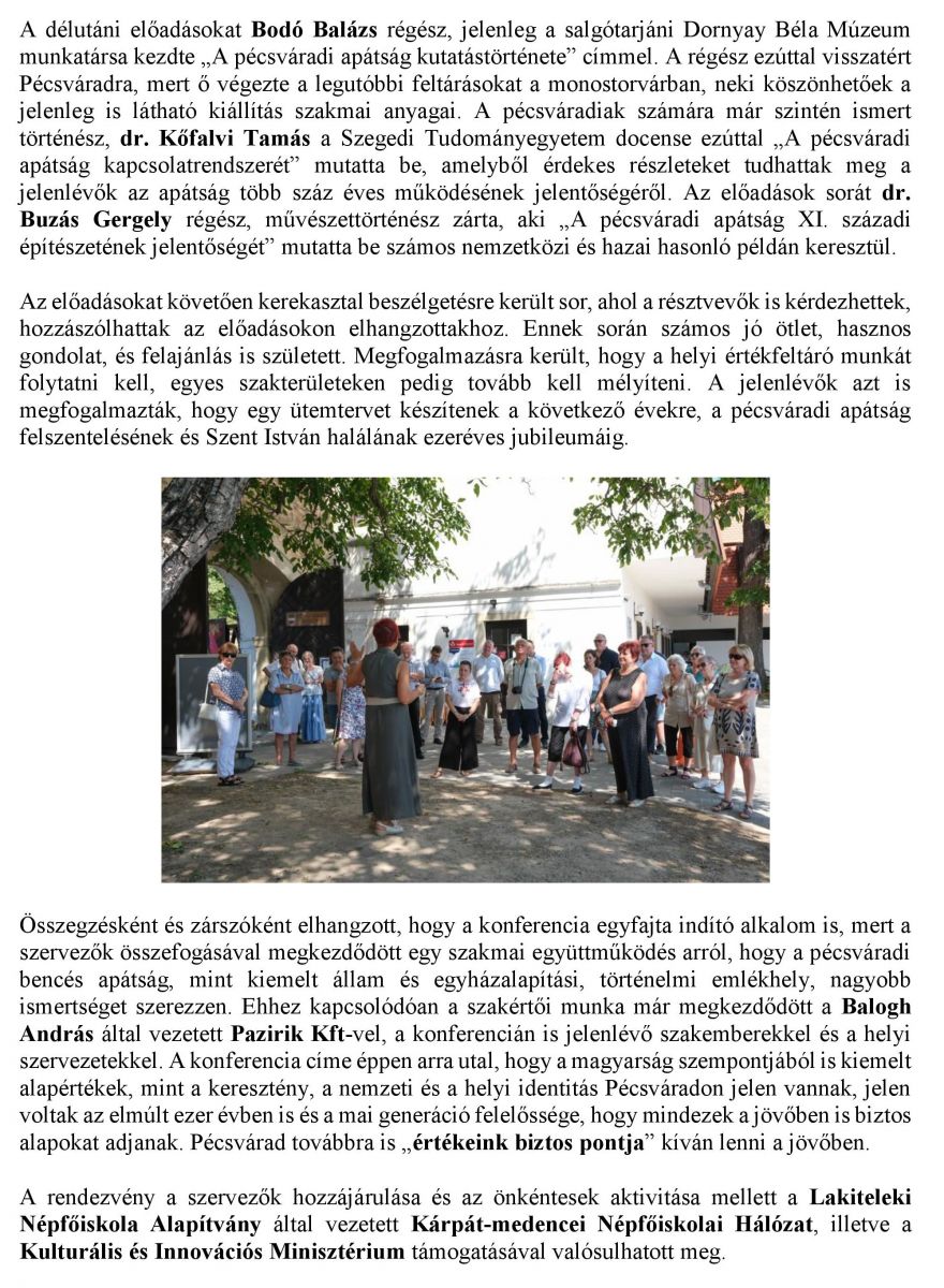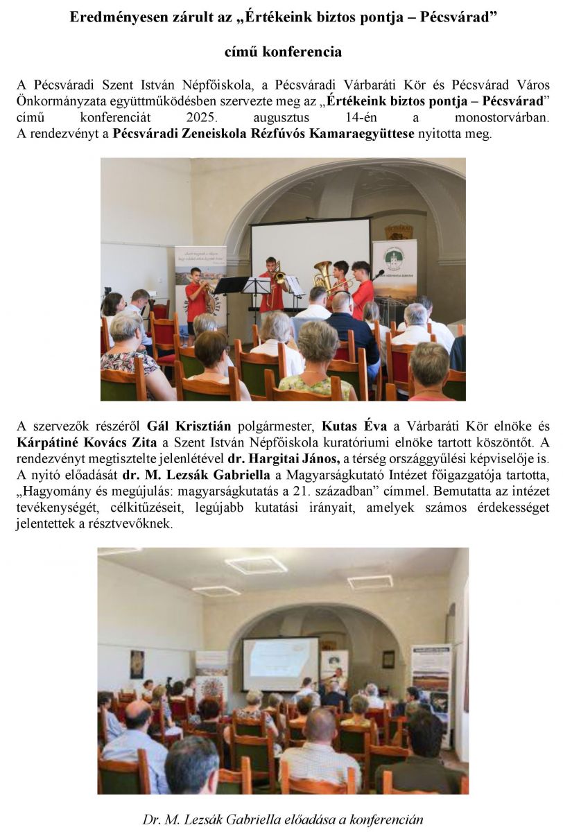 Eredményesen zárult az „Értékeink biztos pontja – Pécsvárad” című konferencia