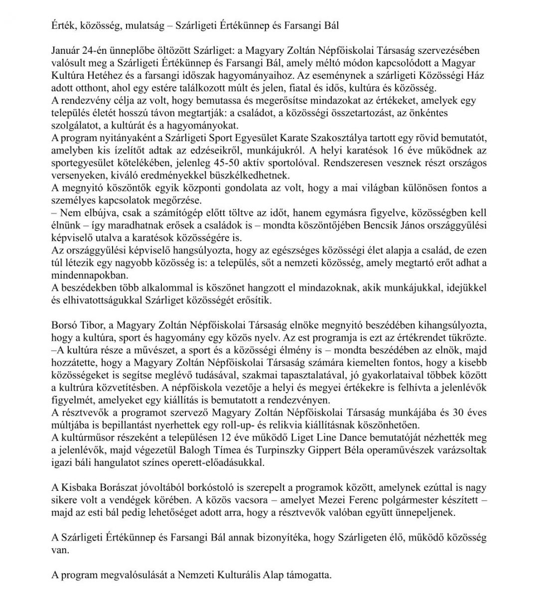 Érték, közösség, mulatság – Szárligeti Értékünnep és Farsangi Bál
