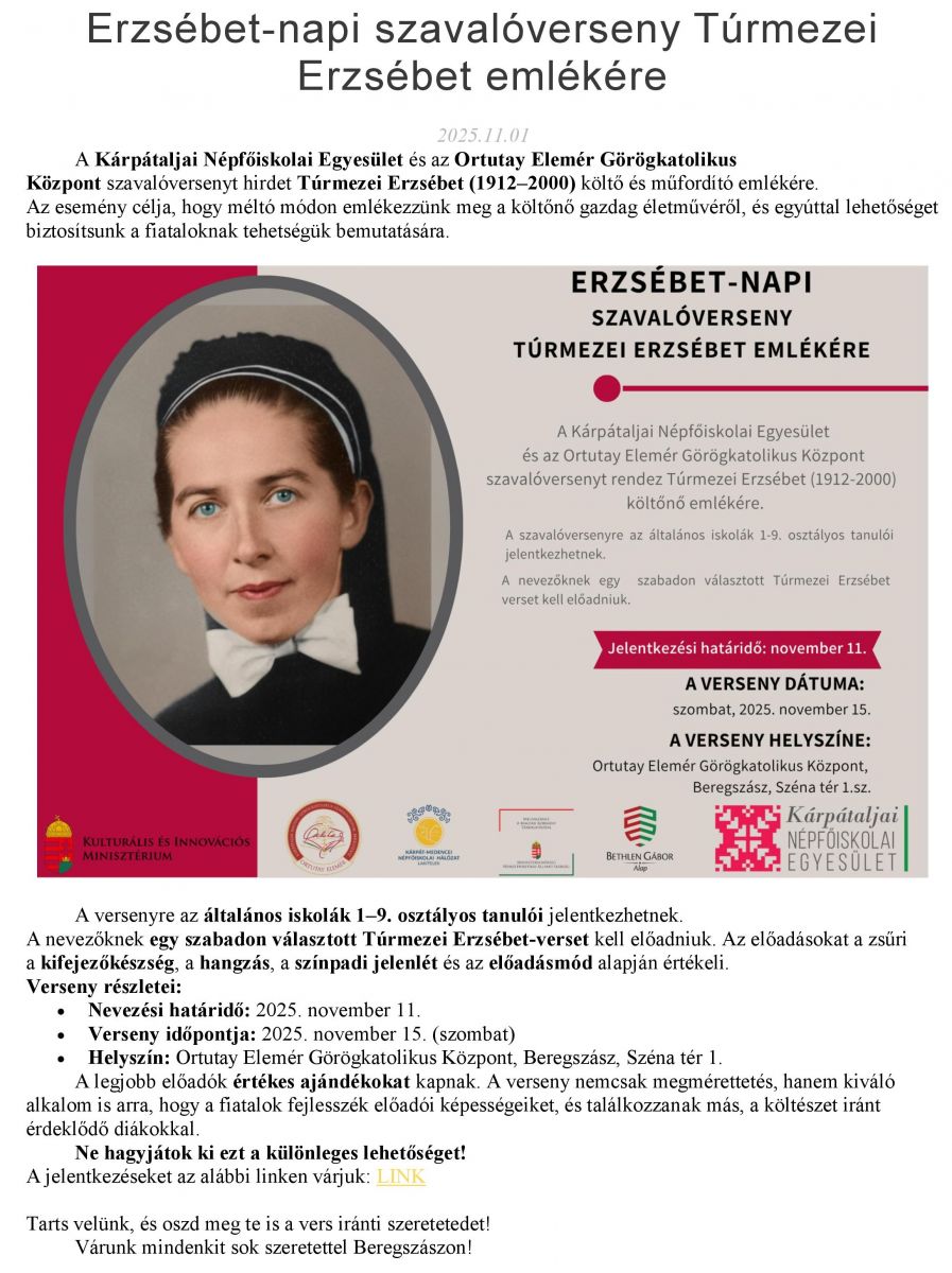 Erzsébet-napi szavalóverseny Túrmezei Erzsébet emlékére