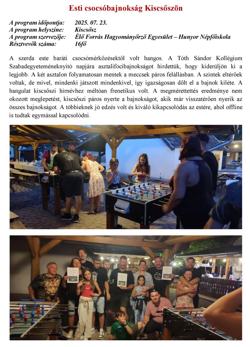 Esti csocsóbajnokság Kiscsőszön