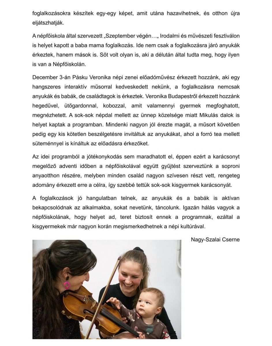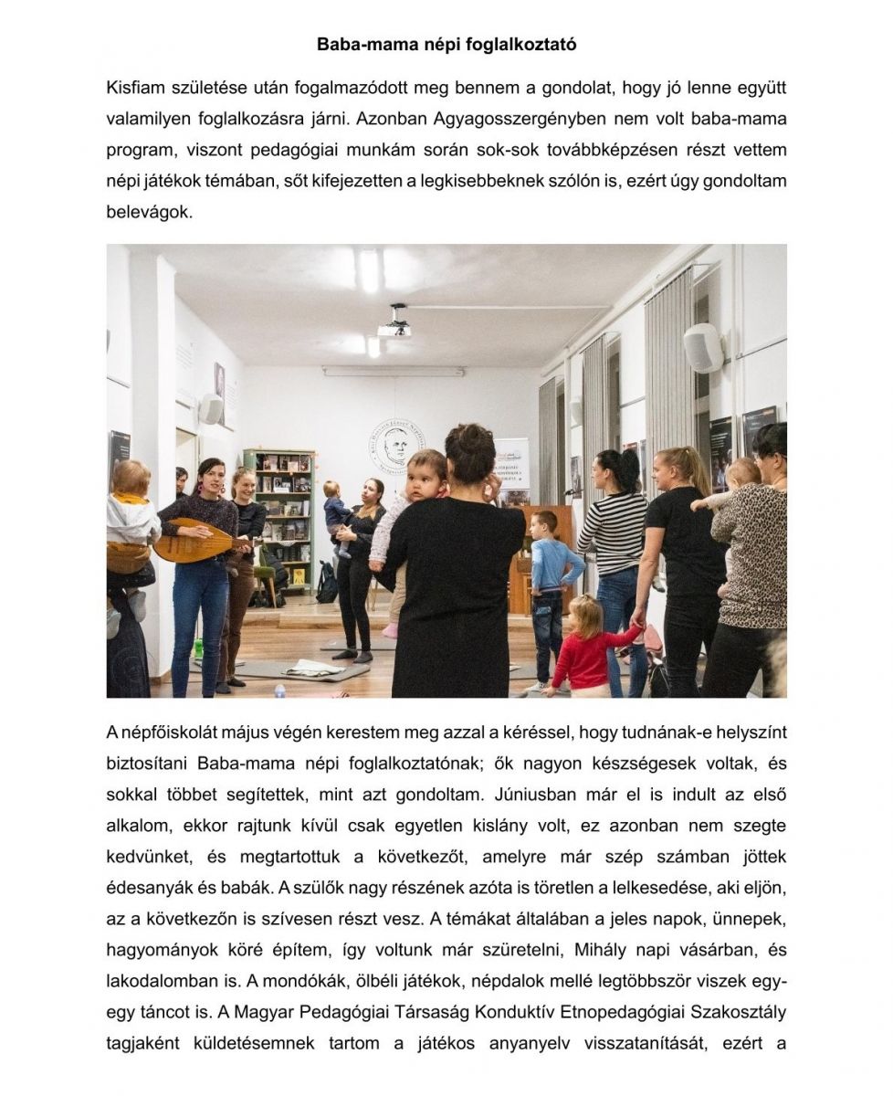 Éves beszámoló - Baba-mama népi foglalkoztató