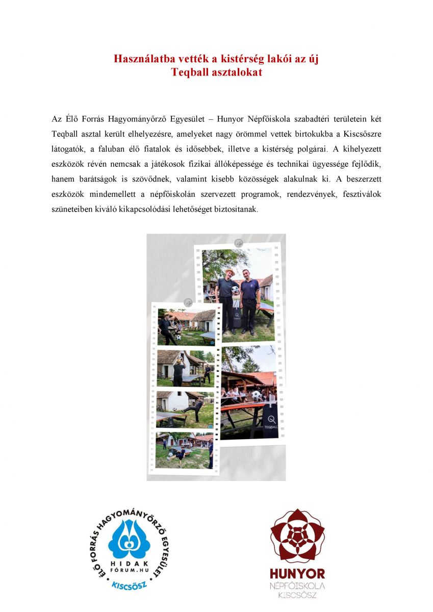 Használatba vették a kistérség lakói az új Teqball asztalokat
