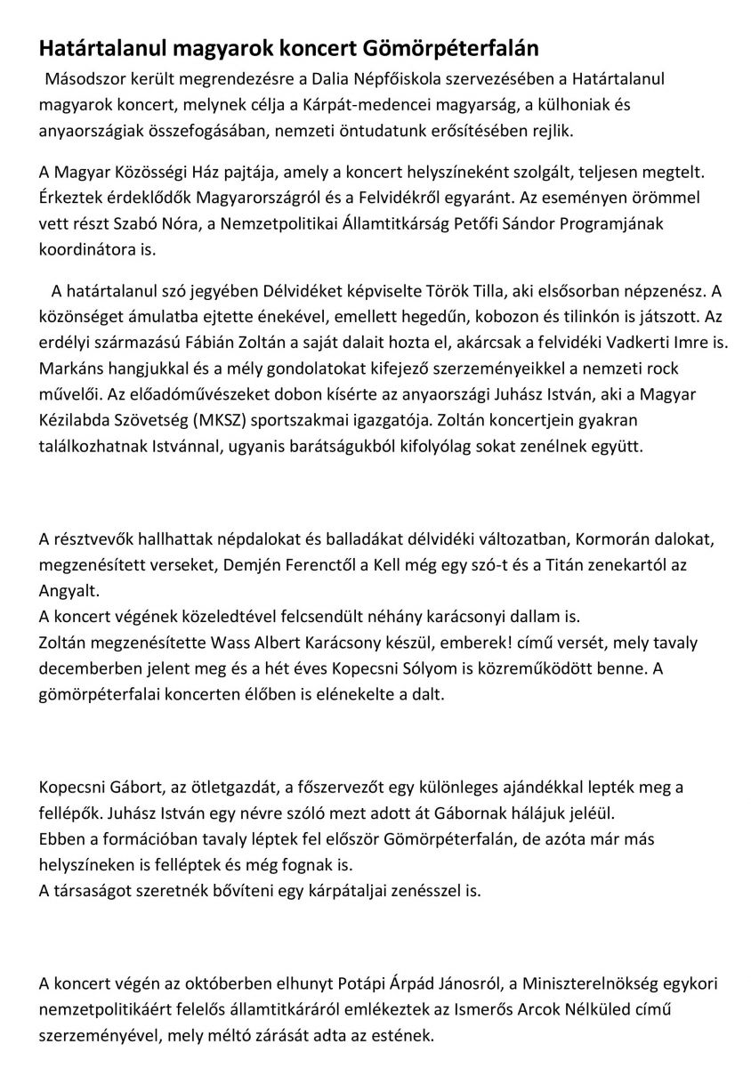 Határtalanul magyarok koncert Gömörpéterfalán