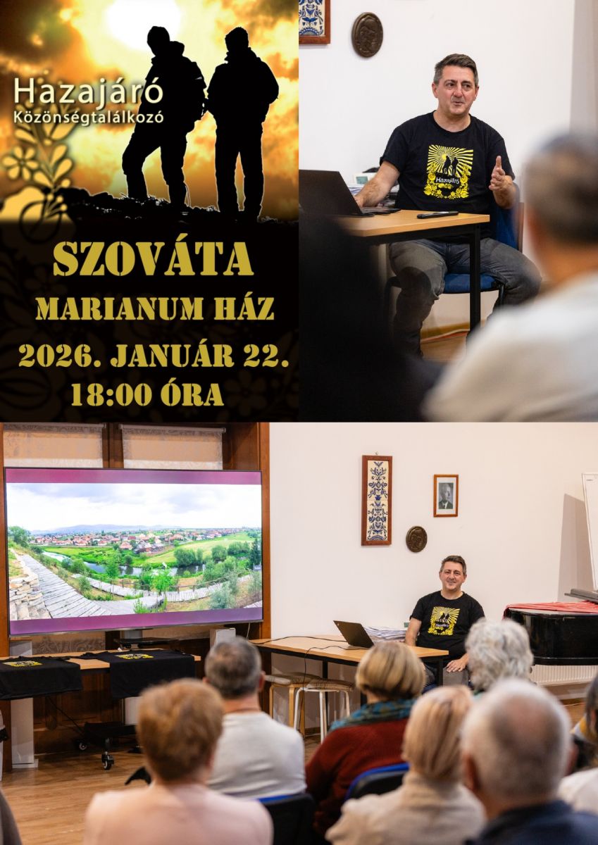 A Magyar Kultúra Napján bebarangoltuk a Kárpát-medence tájait a „HAZAJÁRÓ” filmsorozat stábjával, akik közönségtalálkozó keretében meséltek 15 év kalandjairól, találkozásairól, felfedezéseiről. A magyar táj, a magyar kultúra, a magyar hagyományok őrei ők; hittel, emberséggel, humorral feltarisznyálva járják a Kárpát-medence tájait, és fedeztetik fel, szerettetik meg sokakkal hazánk kincseit. A közönségtalálkozón elkápráztató információkat osztottak meg, hihetetlen felvételeket mutattak, könnyesre nevettük magunkat sztorijaikon, és másfajta könnyeket csalt szemünkbe jónéhány vallomás, táj és felismerés megérintő mélysége. Katarzissal teli este volt, méltó az ünnephez, s a program végére tükörjéggé fagyott úton csúszkálva megszületett az elhatározás, hogy folytatást követel ez az esemény.