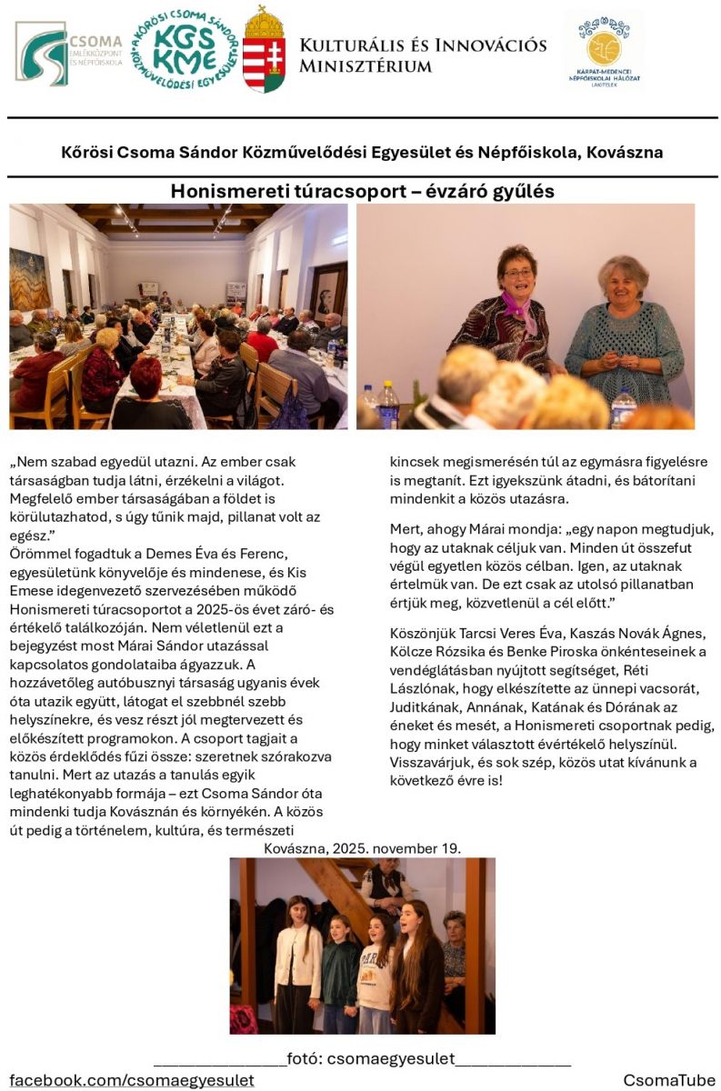Honismereti túracsoport – évzáró gyűlés