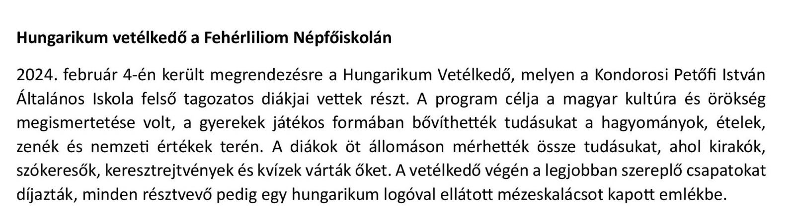 Hungarikum vetélkedő a Fehérliliom Népfőiskolán