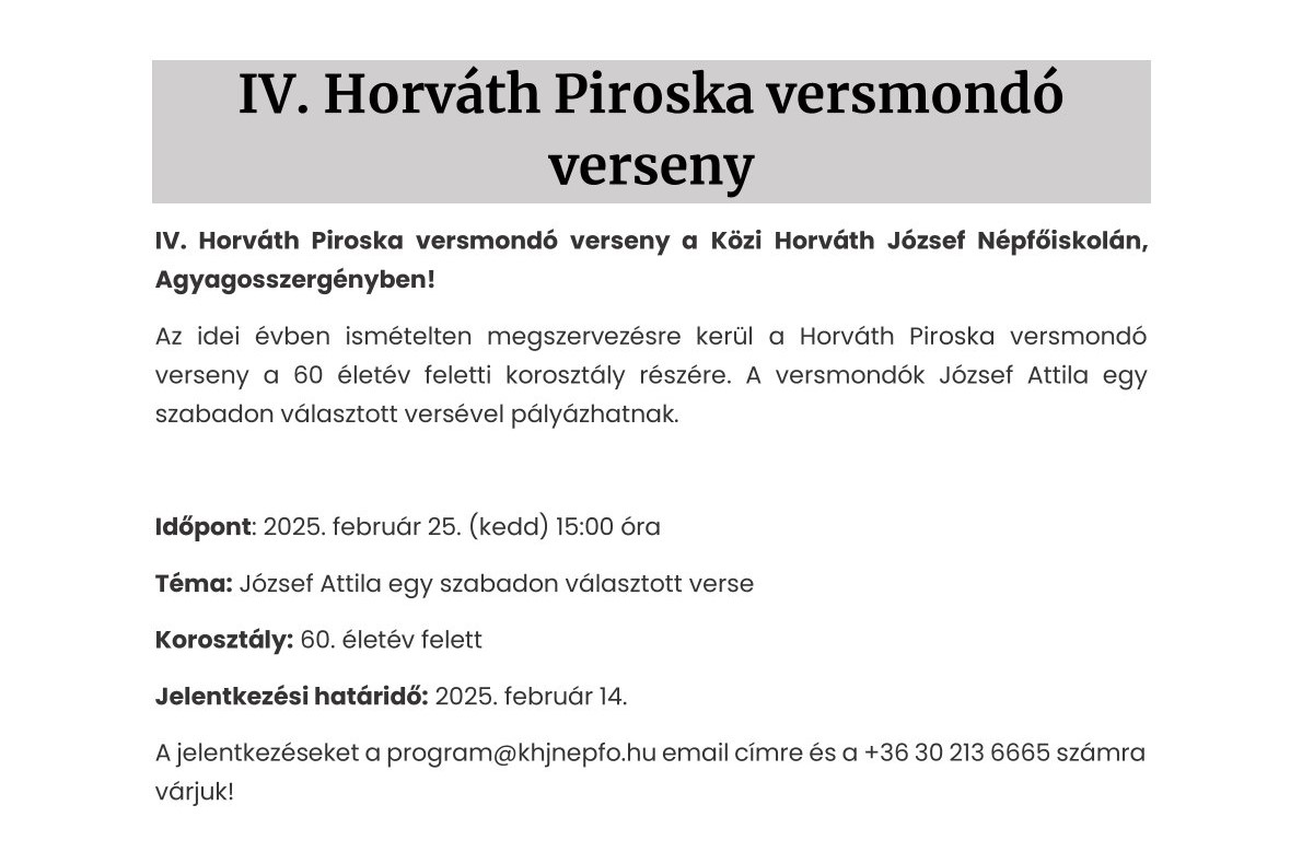 További információért látogassanak el az agyagosszergényi Közi Horváth József Népfőiskola honlapjára.