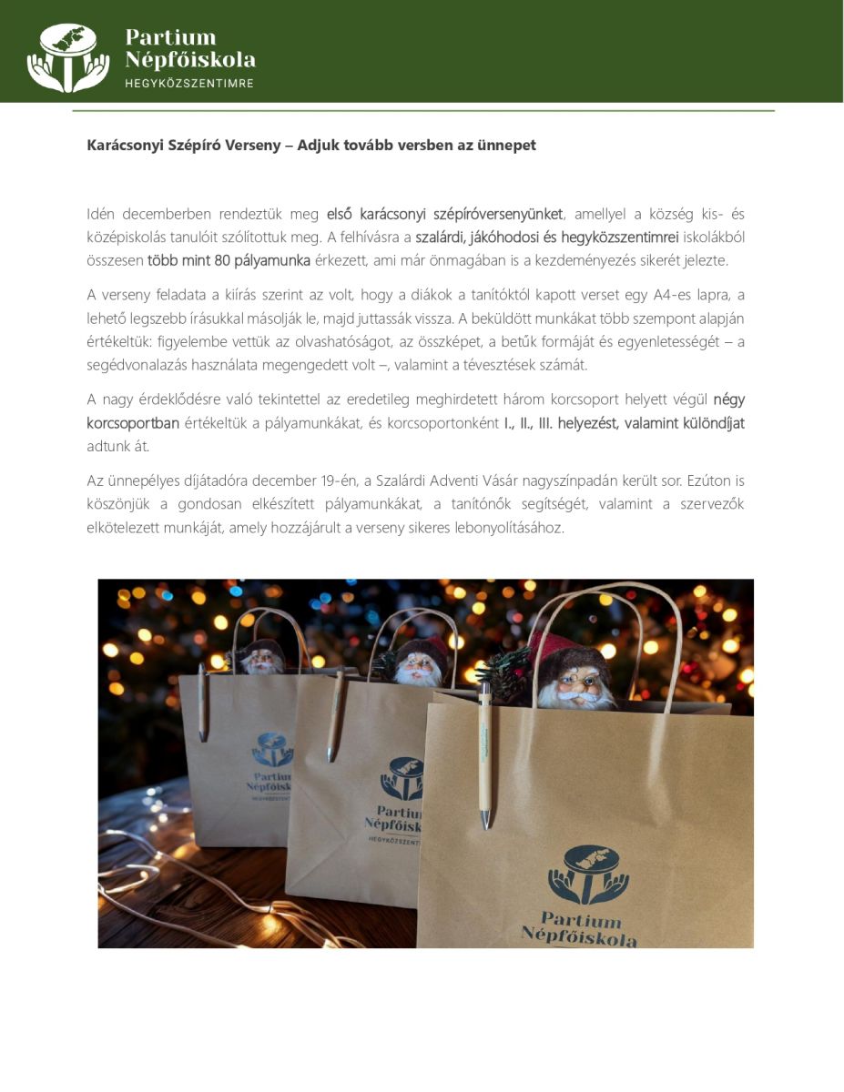 Karácsonyi Szépíró Verseny – Adjuk tovább versben az ünnepet