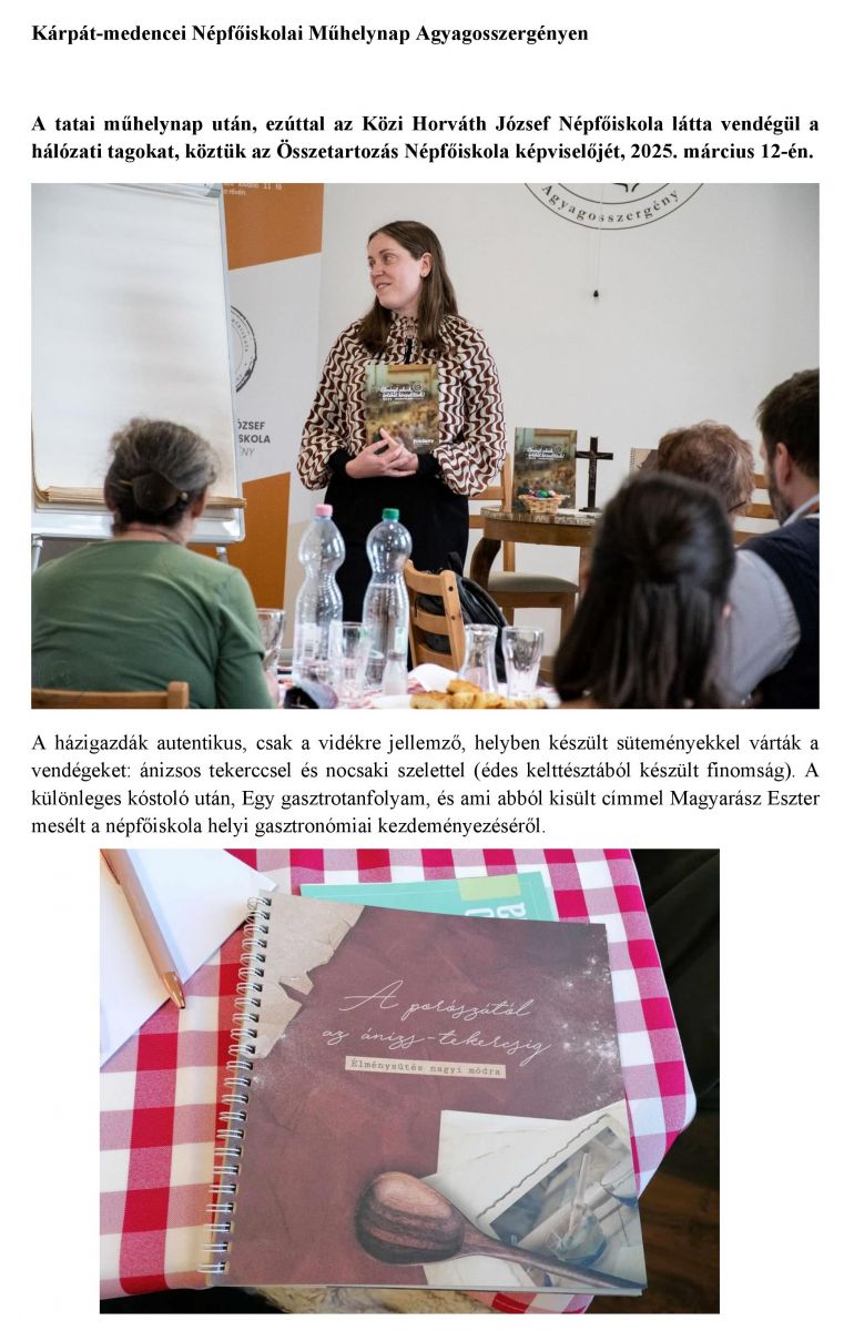 Kárpát-medencei Népfőiskolai Műhelynap Agyagosszergényen