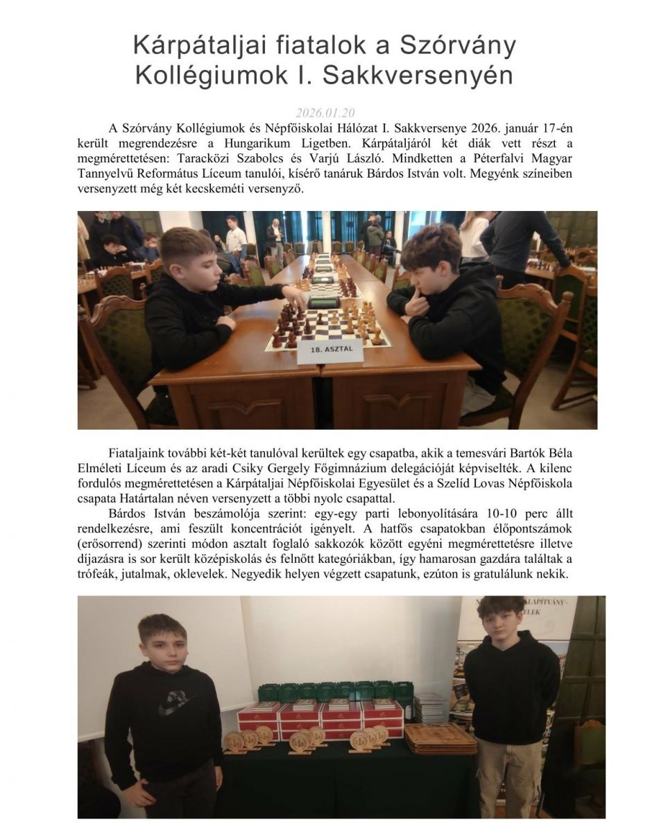 Kárpátaljai fiatalok a Szórvány Kollégiumok I. Sakkversenyén