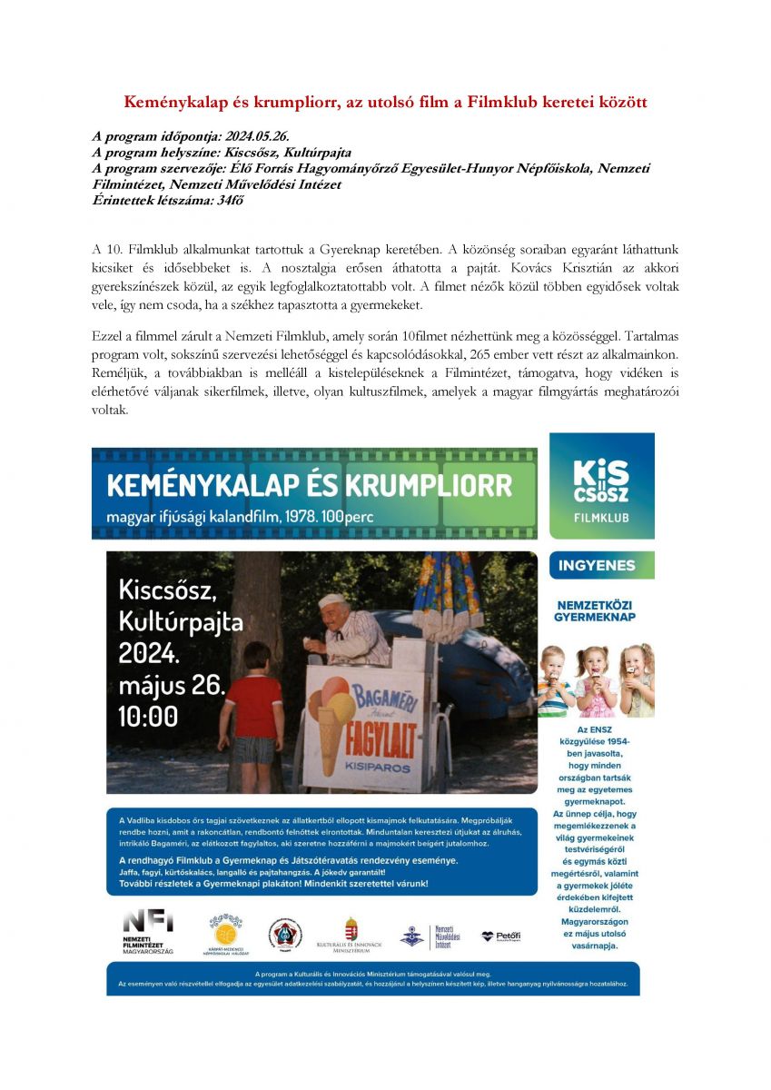 Keménykalap és krumpliorr, az utolsó film a Filmklub keretei között