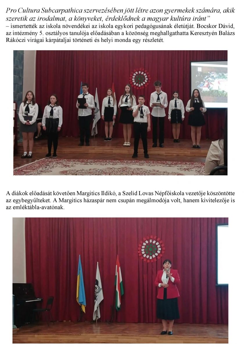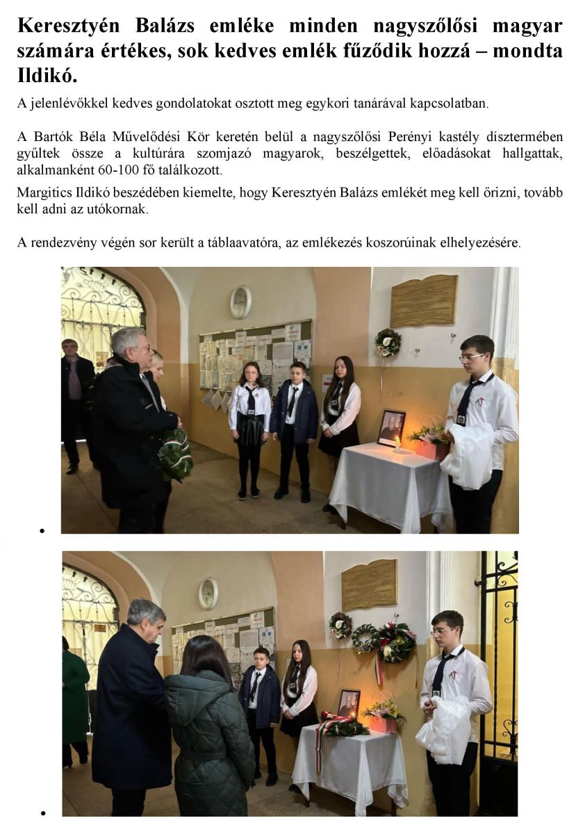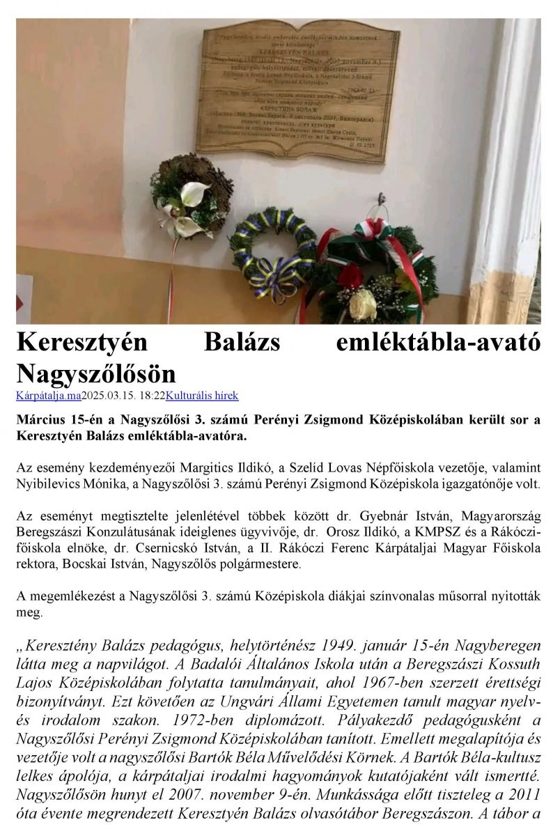 Keresztyén Balázs emléktábla-avató Nagyszőlősön