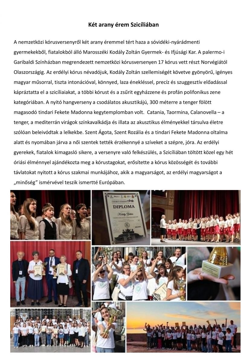Két arany érem Szicíliában