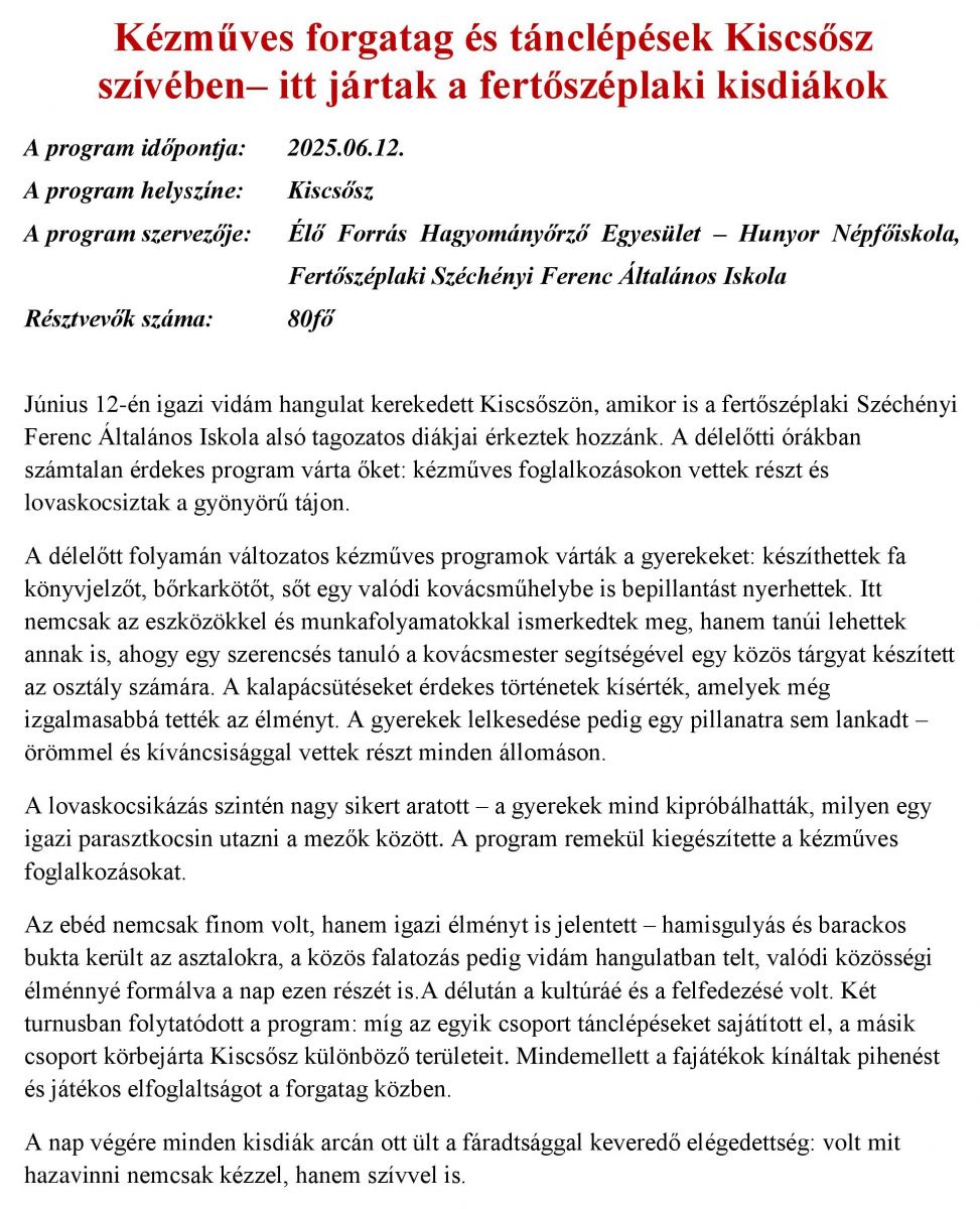 Kézműves forgatag és tánclépések Kiscsősz szívében– itt jártak a fertőszéplaki kisdiákok