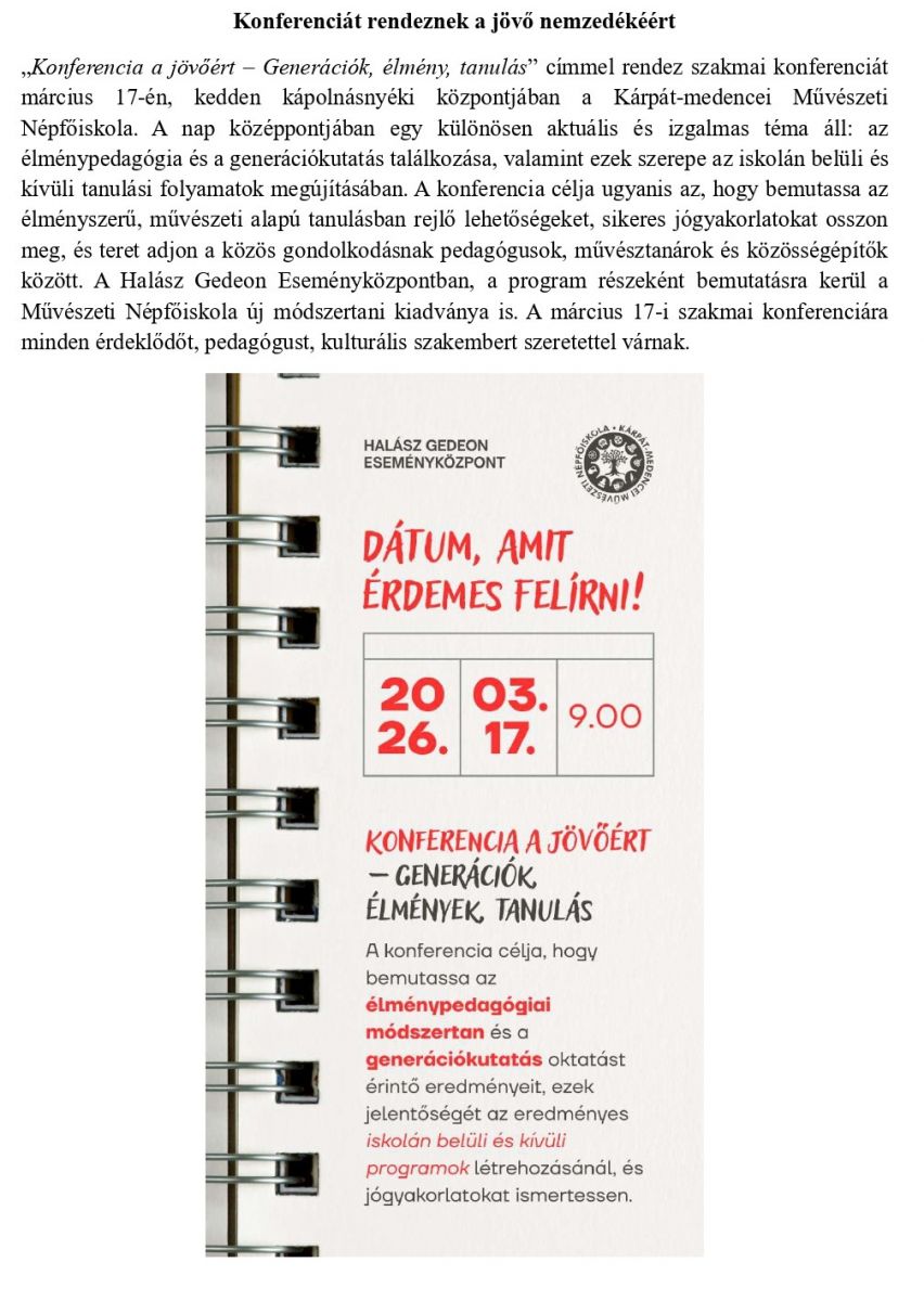Konferenciát rendeznek a jövő nemzedékéért