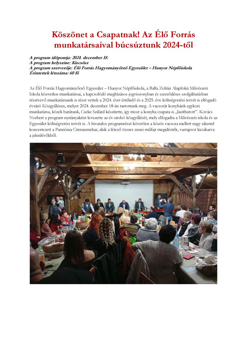 Köszönet a Csapatnak! Az Élő Forrás munkatársaival búcsúztunk 2024-től