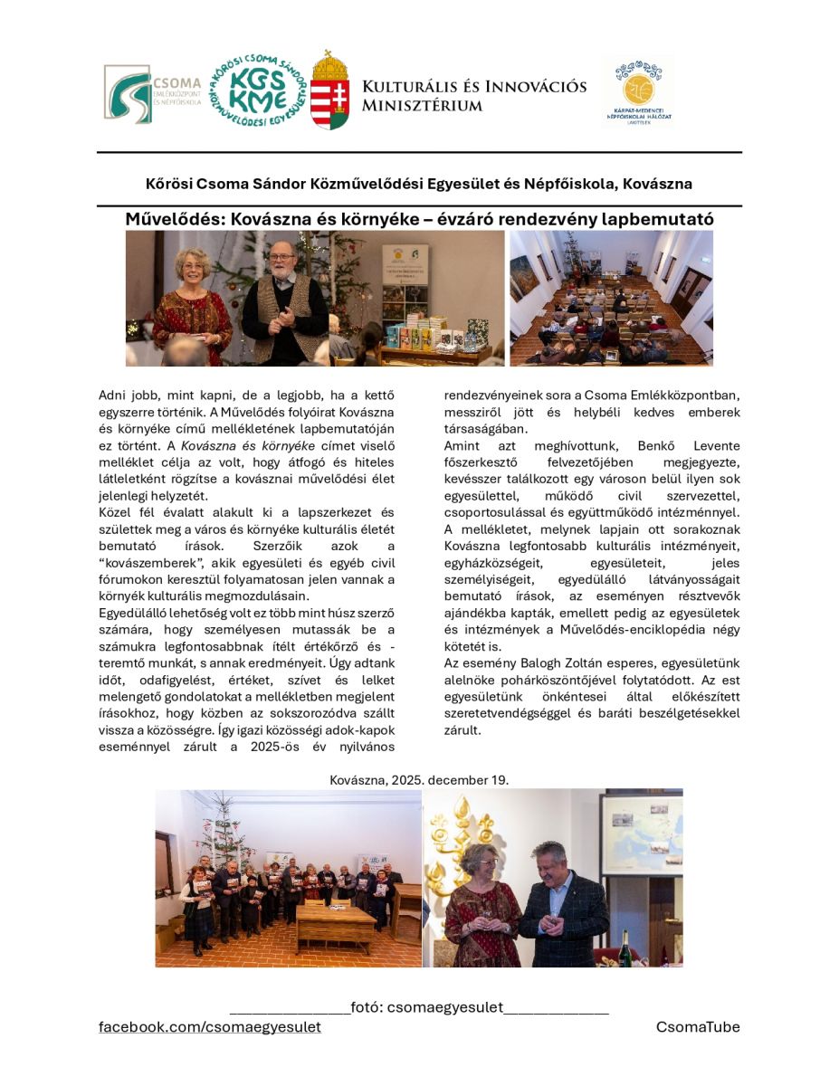 Kovászna és környéke – évzáró rendezvény lapbemutató