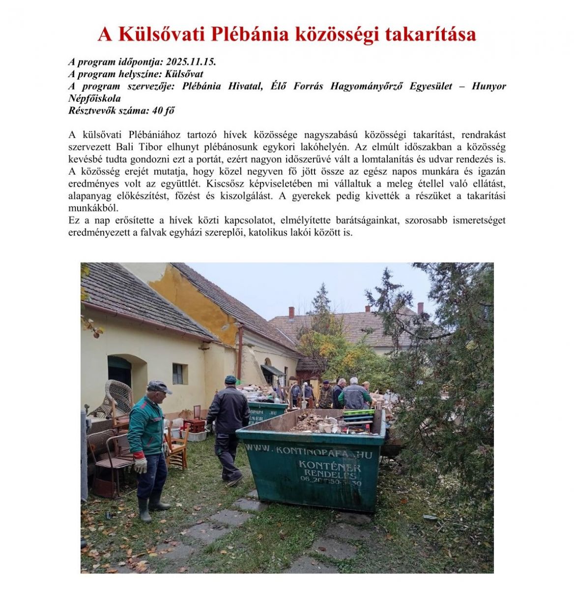 Közösségi plébánia takarítás Külsővaton