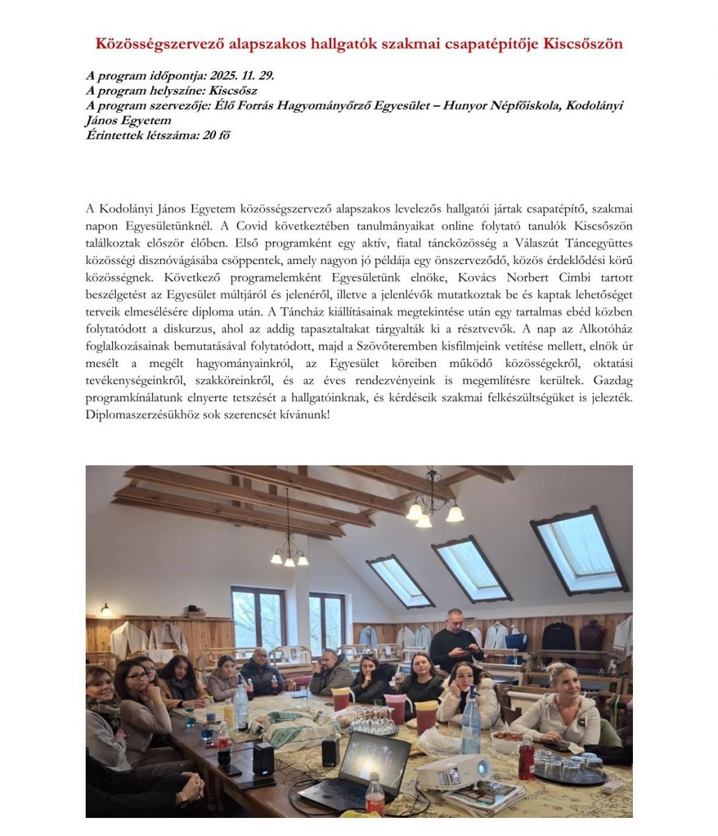 Közösségszervező szakos egyetemisták tanulmányútja Kiscsőszön