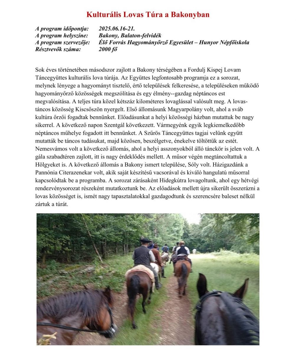 Kulturális Lovas Túra a Bakony-Balaton-felvidék településein