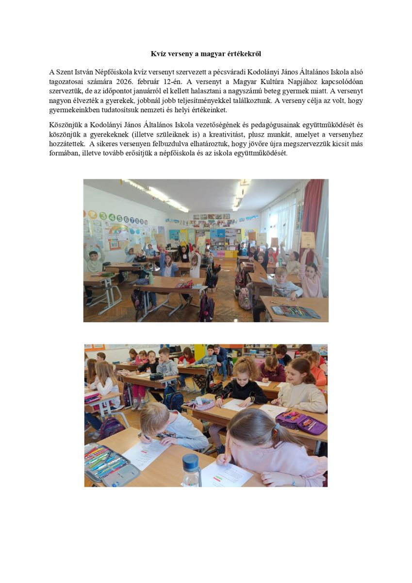 Kvíz verseny a magyar értékekről
