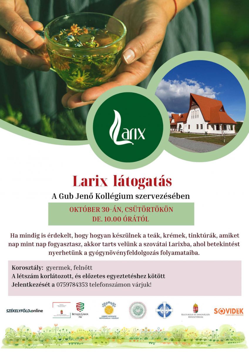 Ha mindig is érdekelt, hogy hogyan készülnek a teák, krémek, tinktúrák, amiket nap mint nap fogyasztasz, akkor tarts velünk október 30-án, délelőtt 10 órától a szovátai Larixba, ahol betekintést nyerhetünk a gyógynövényfeldolgozás folyamataiba. A helyek száma limitált, jelentkezésedet a plakáton szereplő telefonszámon várjuk!
