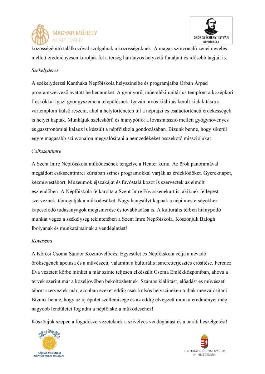 További információért látogassanak el a mezőörsi Magyar Műhely Közhasznú Alapítvány - gr. Széchenyi István Népfőiskola honlapjára.