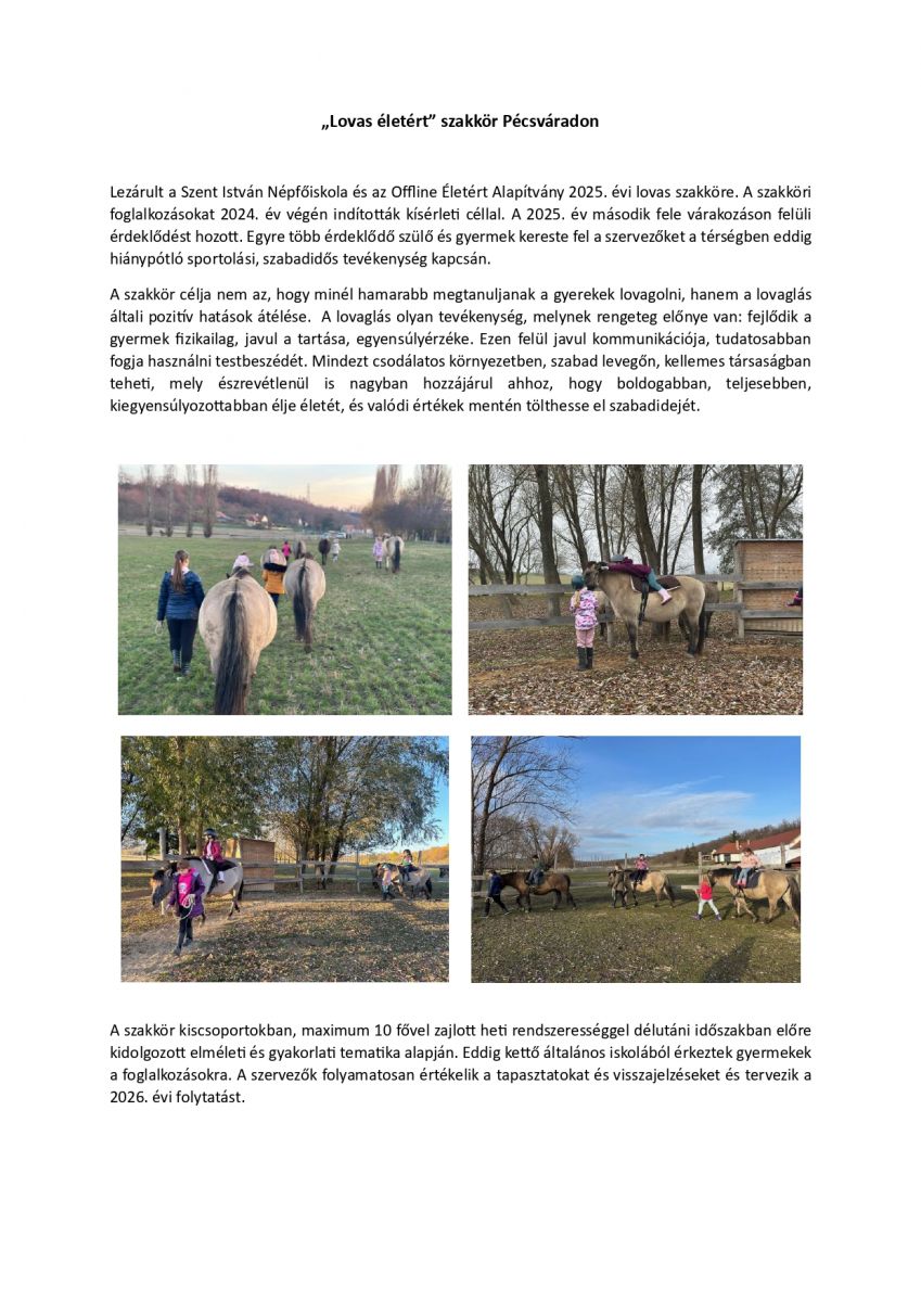 „Lovas életért” szakkör Pécsváradon