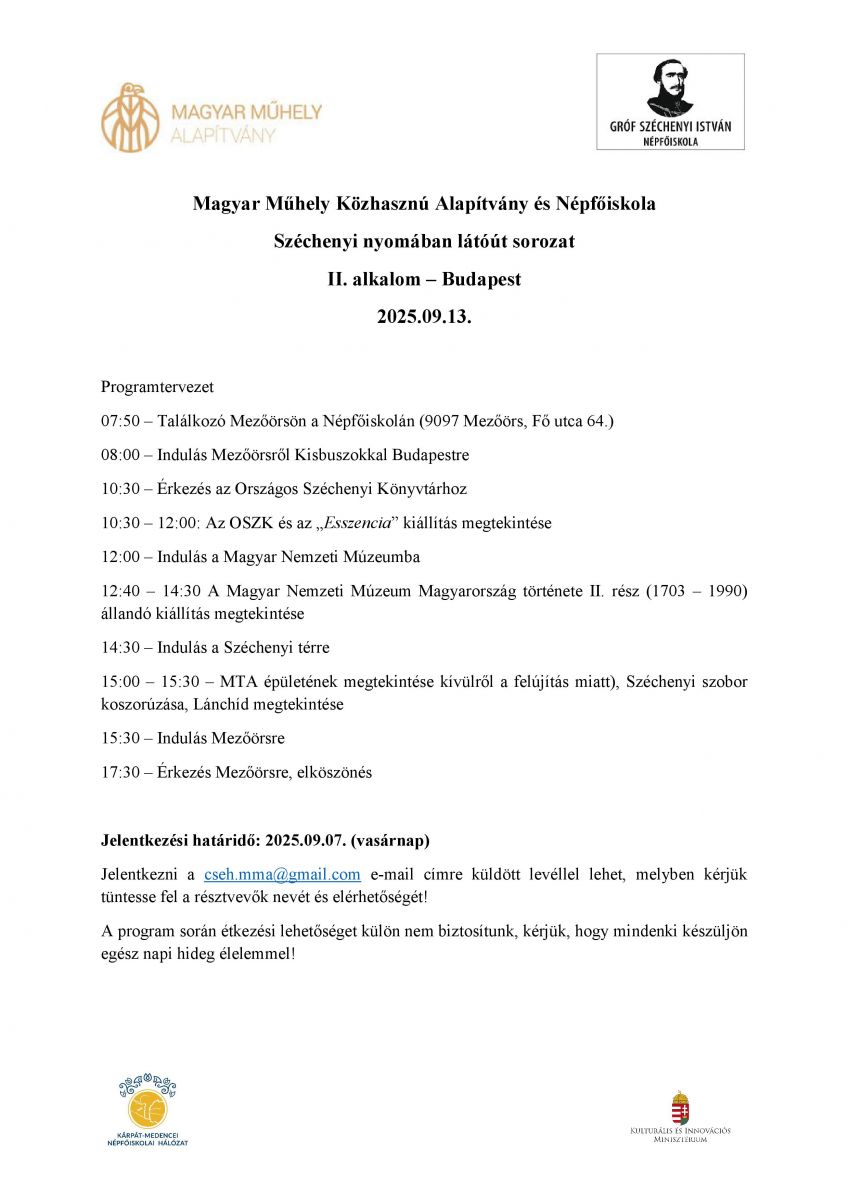 További információért látogassanak el a mezőörsi Magyar Műhely Közhasznú Alapítvány - gr. Széchenyi István Népfőiskola honlapjára.