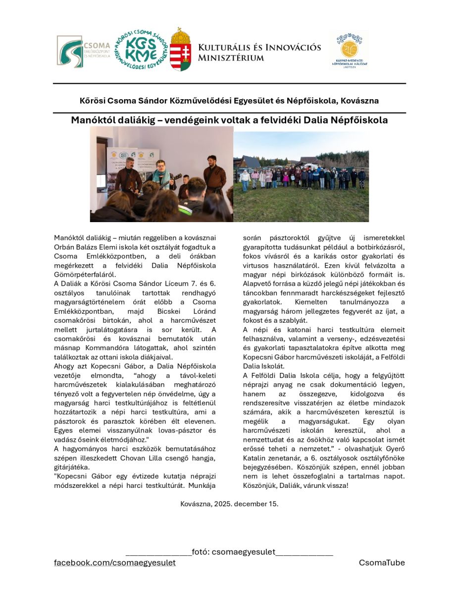 Manóktól daliákig – vendégeink voltak a felvidéki Dalia Népfőiskola