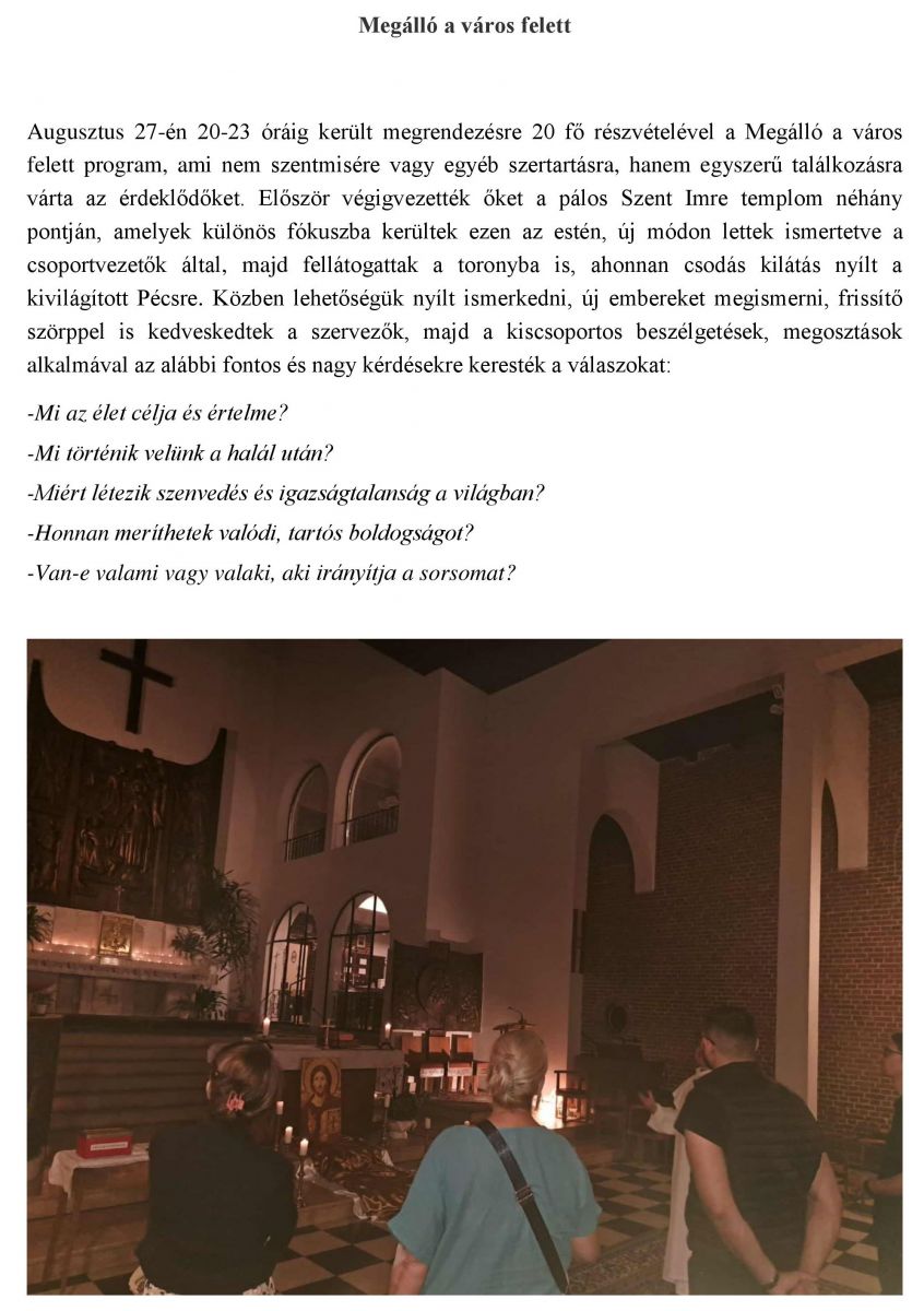 Megálló a város felett beszámoló