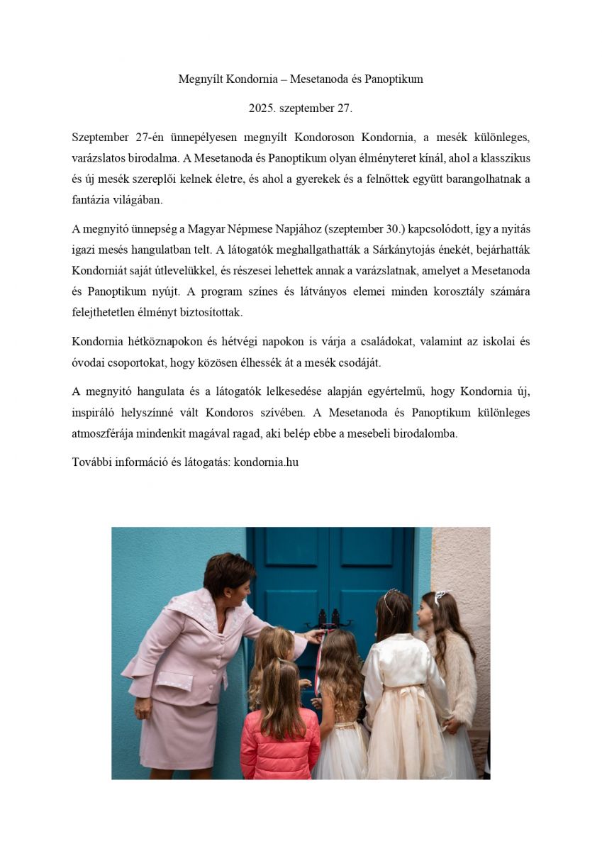 Megnyílt Kondornia – Mesetanoda és Panoptikum