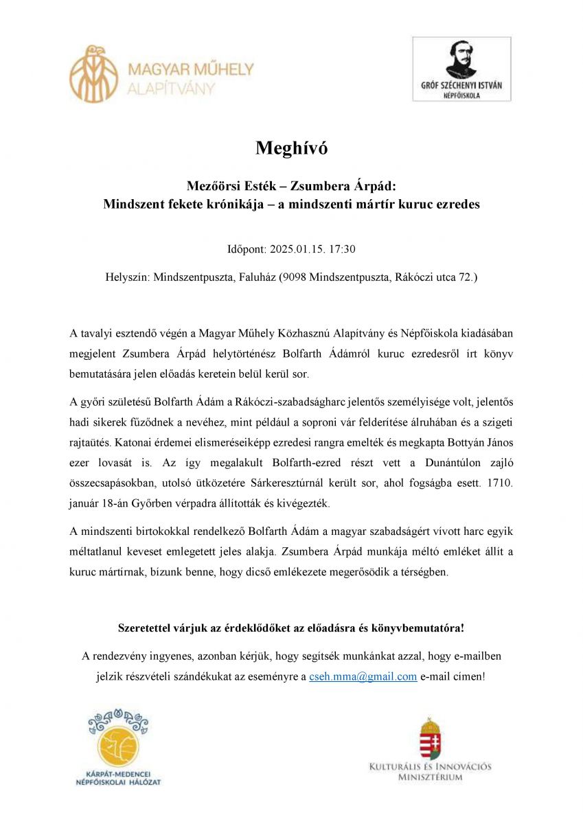 További információért látogassanak el a mezőörsi Magyar Műhely Közhasznú Alapítvány - gr. Széchenyi István Népfőiskola honlapjára.