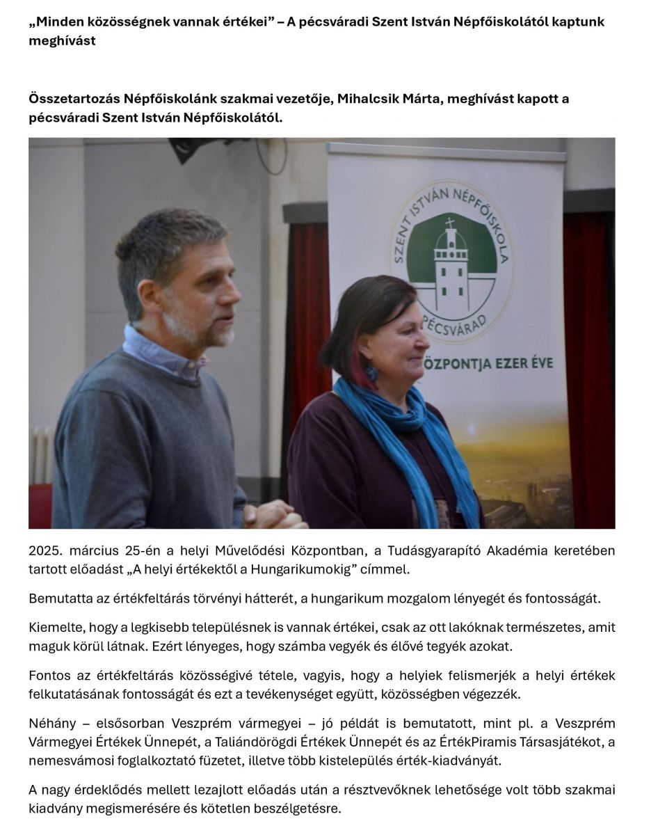 „Minden közösségnek vannak értékei” – A pécsváradi Szent István Népfőiskolától kaptunk meghívást