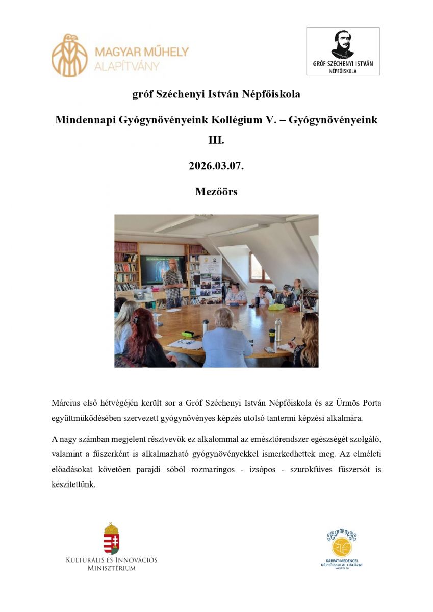 Mindennapi Gyógynövényeink Kollégium V. – Gyógynövényeink III.