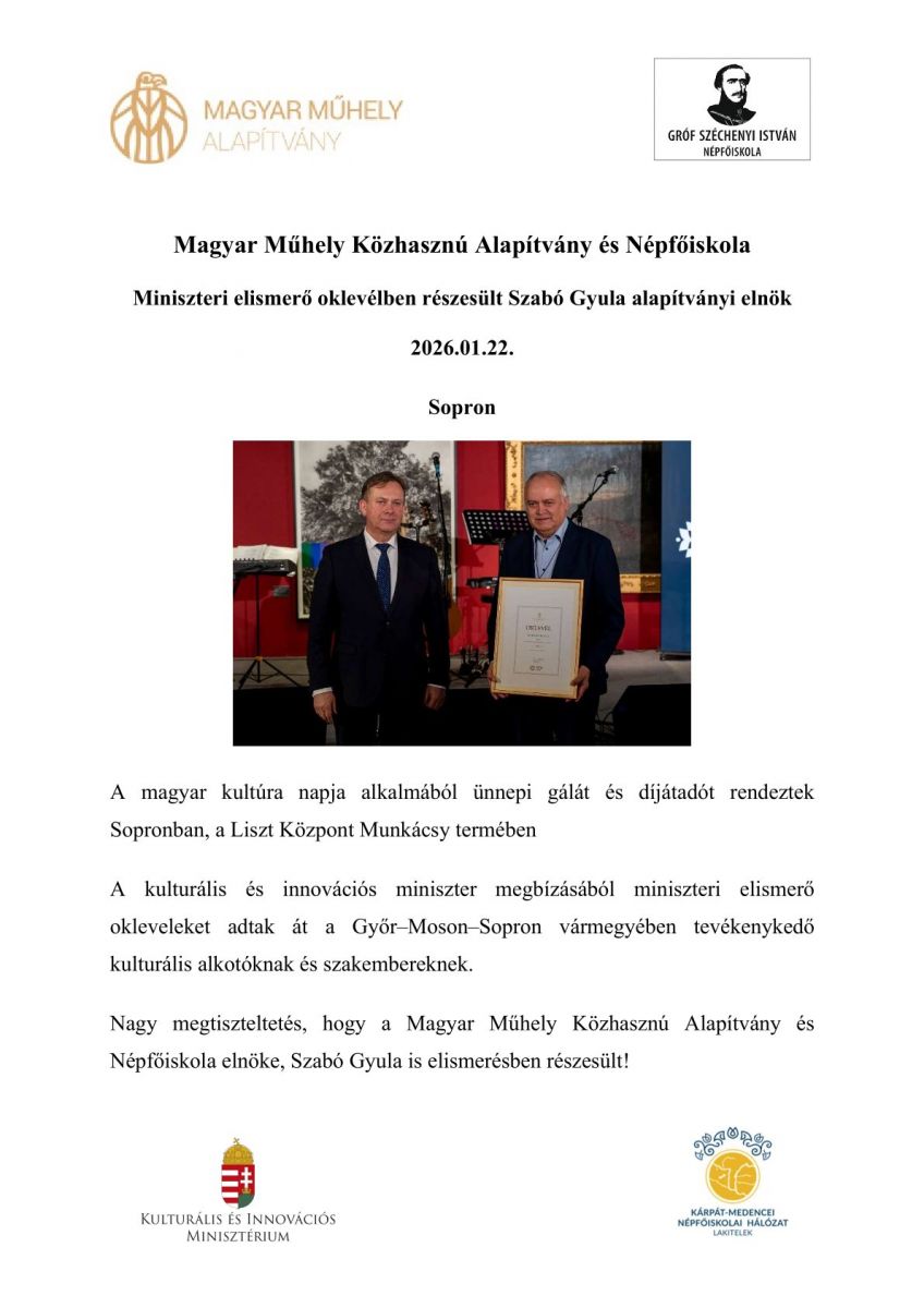 További információért látogassanak el a mezőörsi Magyar Műhely Közhasznú Alapítvány - gr. Széchenyi István Népfőiskola honlapjára.