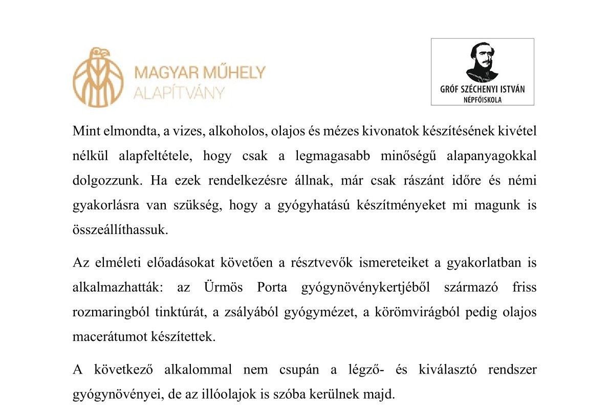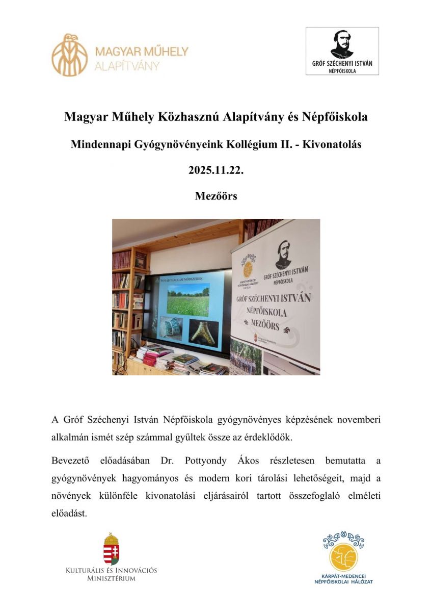 További információért látogassanak el a mezőörsi Magyar Műhely Közhasznú Alapítvány - gr. Széchenyi István Népfőiskola honlapjára.