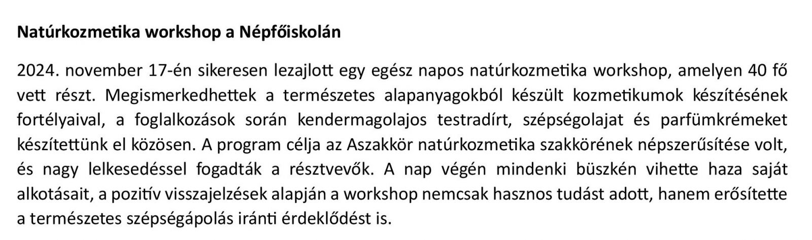 Natúrkozmetika workshop a Népfőiskolán