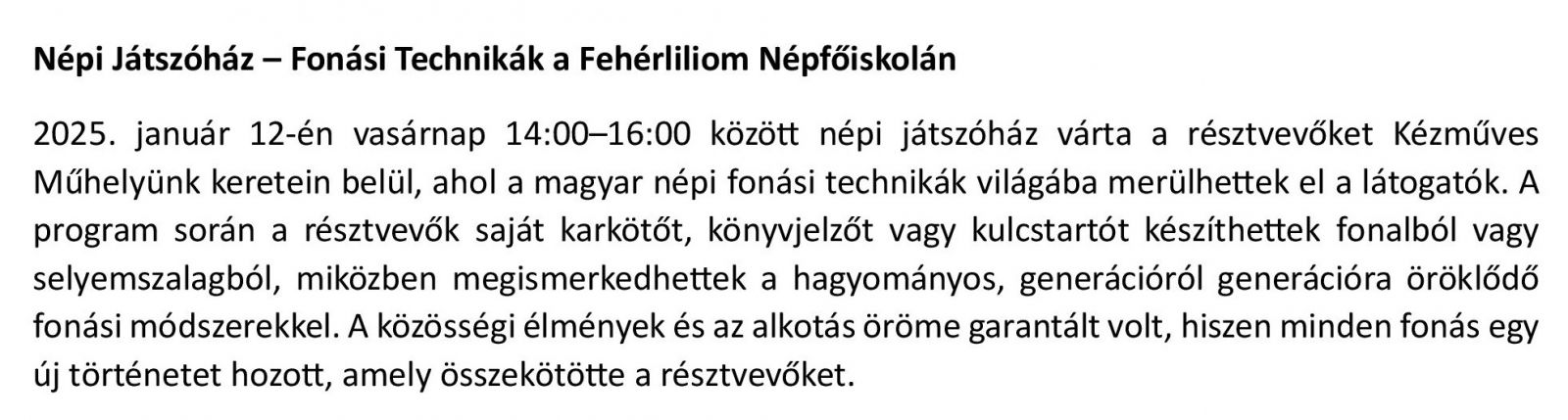 Népi Játszóház – Fonási Technikák a Fehérliliom Népfőiskolán