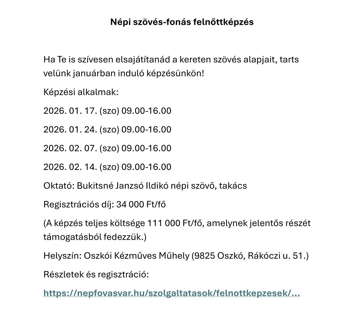 Népi szövés-fonás képzés