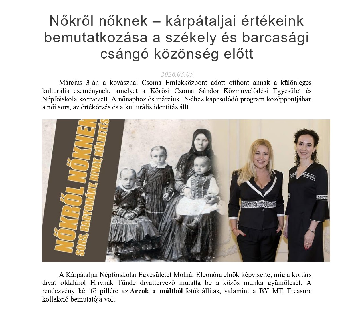 Nőkről nőknek – kárpátaljai értékeink bemutatkozása a székely és barcasági csángó közönség előtt